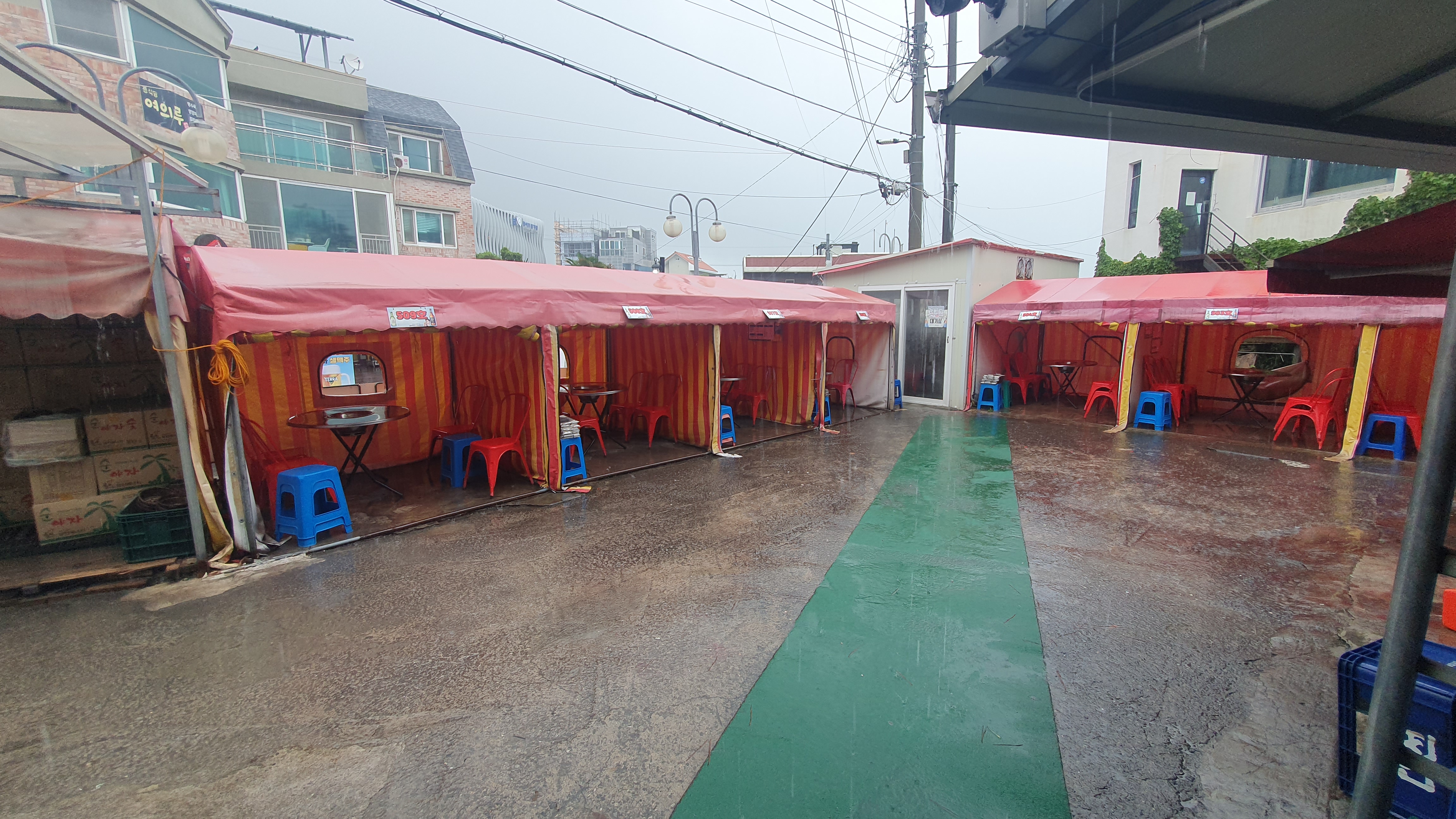 가게 앞에는 포장마차식으로 먹을 수 있도록 세팅이 되어 있었습니다. 비가 많이와서 하지는 않고 있네요.