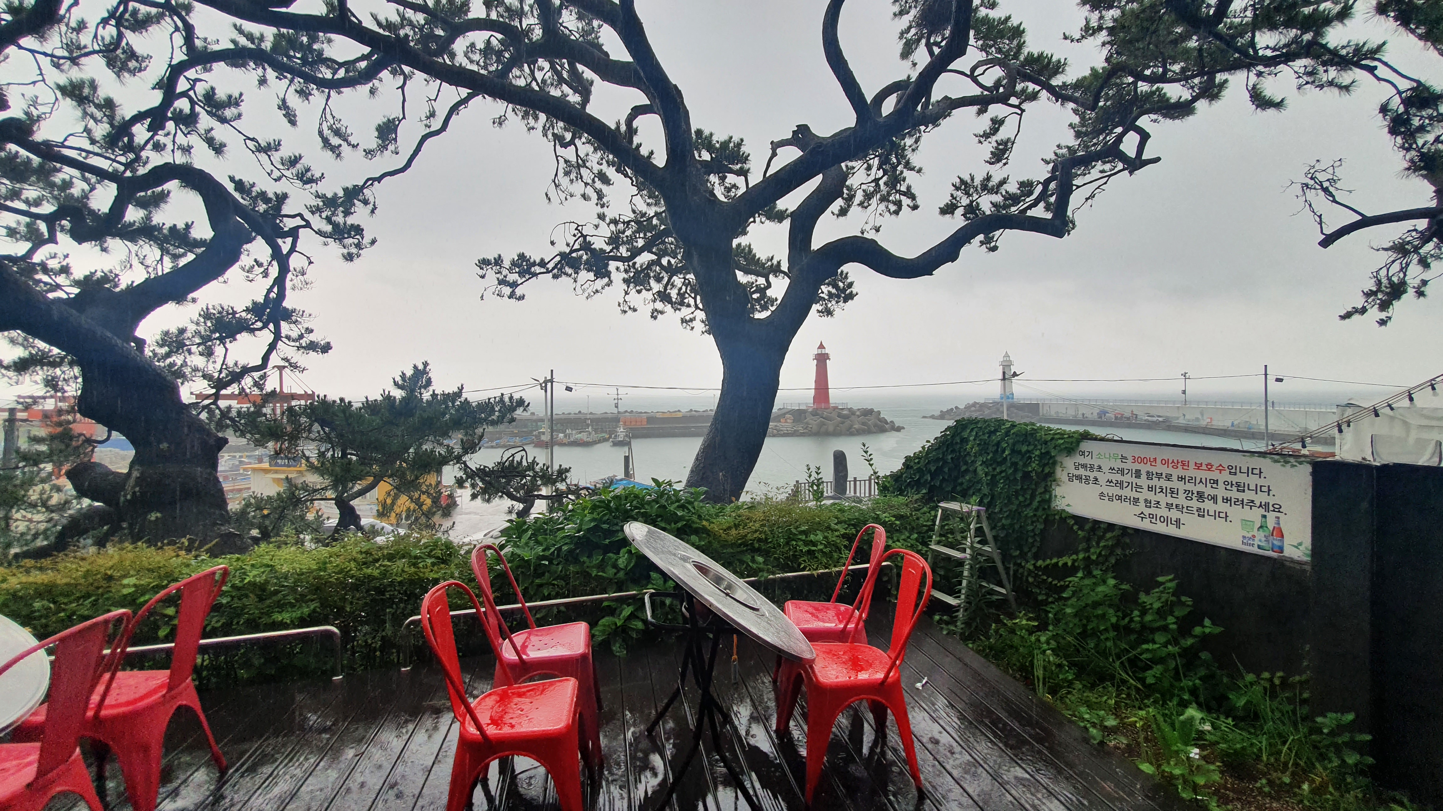 1층에서 식사할때 바로 앞에 이런 풍경이 있습니다. 2층에서 먹었으면 더 좋았겠네요. 비가 많이 쳐들어와서 좀 거리를 두고 식사를 했습니다.
